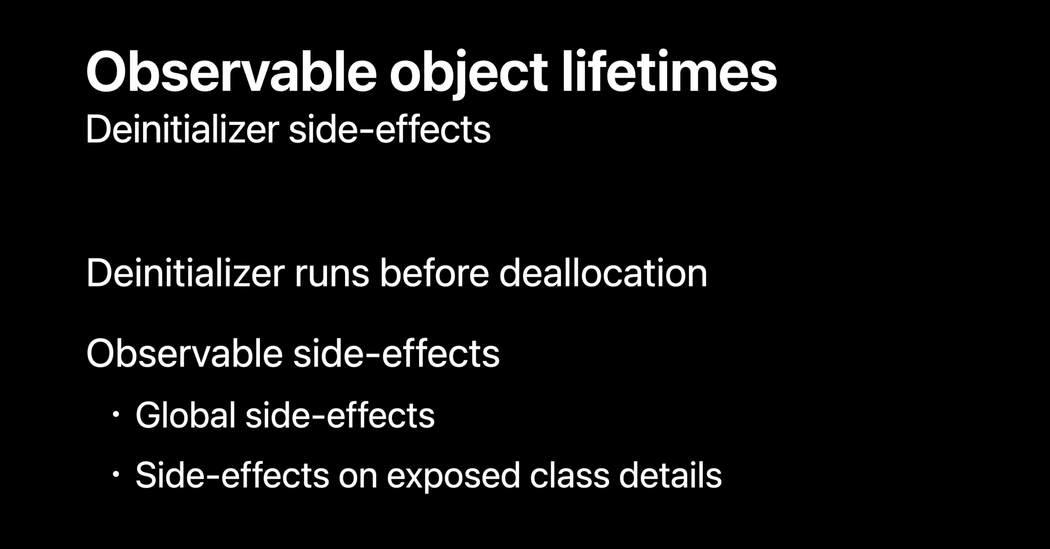 - deinitializer 부작용을 제거함으로써 모든 잠재적 객체 수명 버그를 제거할 수 있음