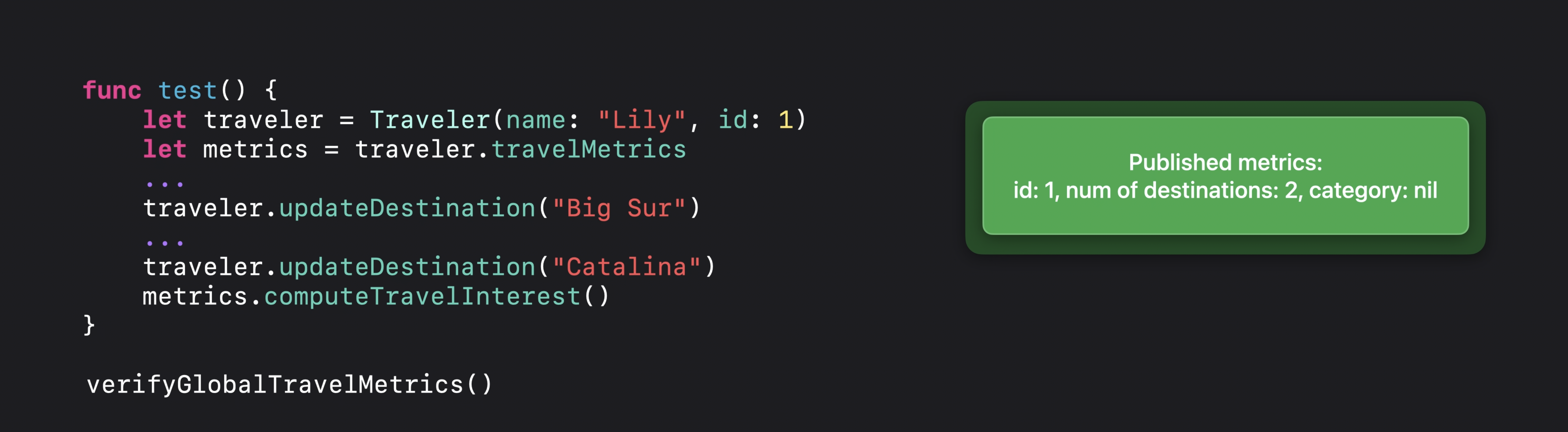 - Traveler 객체를 deinit하면 Metrics는 전역 레코드에 게시됨(metrics get published to a global record)