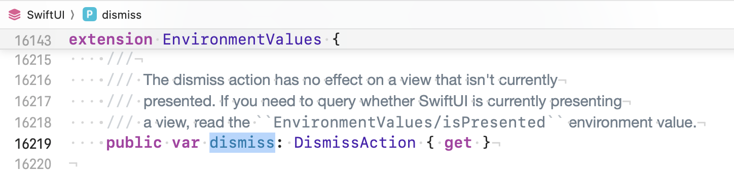@Environment(\.dismiss)를 눌러서 들어가보면